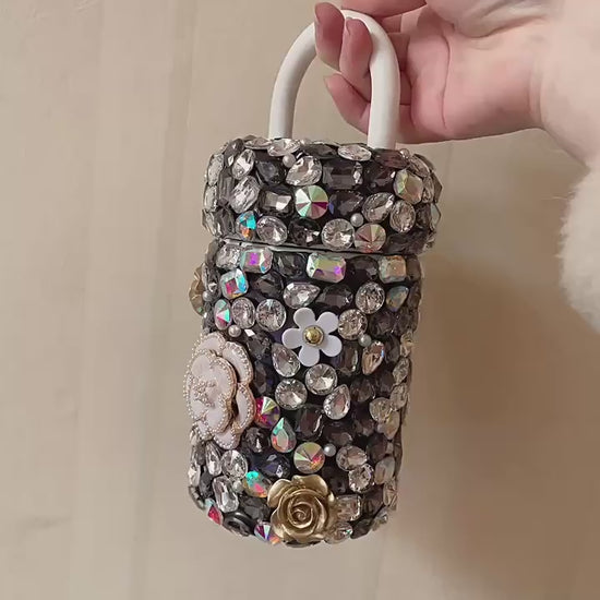 Stay stylish while keeping drinks hot or cold with our 420ml Handmade Diamond-Studded Insulated Tumbler.