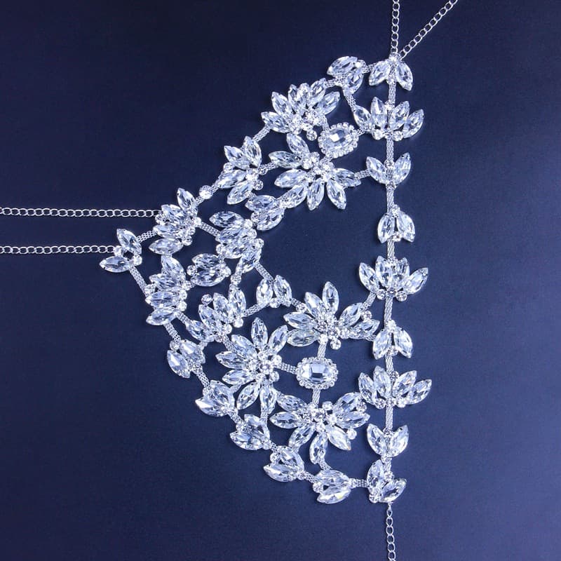 This glamorous face accessory features dazzling rhinestones in an eye-catching oversized design that adds instant drama to any outfit.