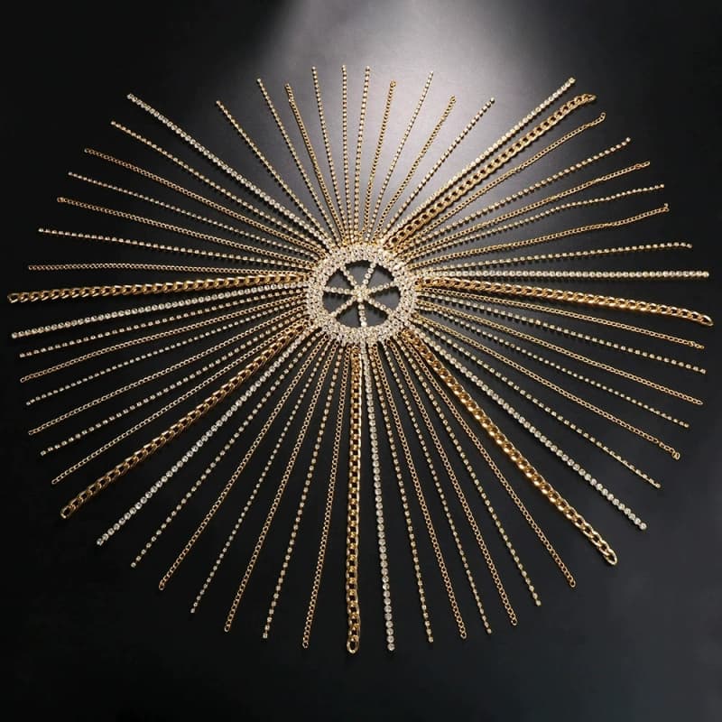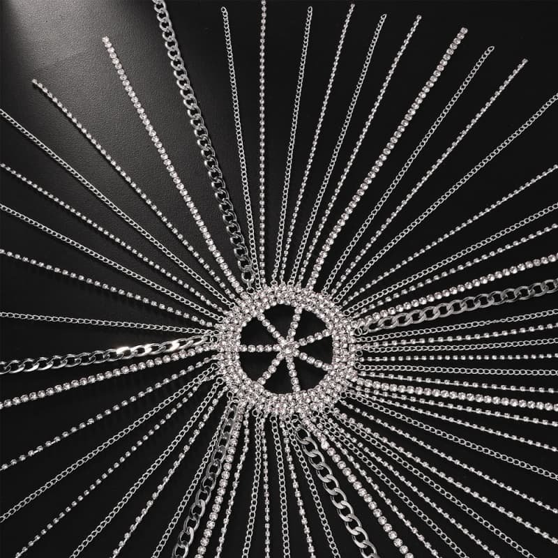The cascading fringe chains create dynamic movement while the comfortable design ensures all-night wear.