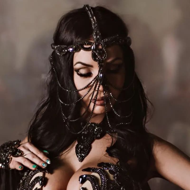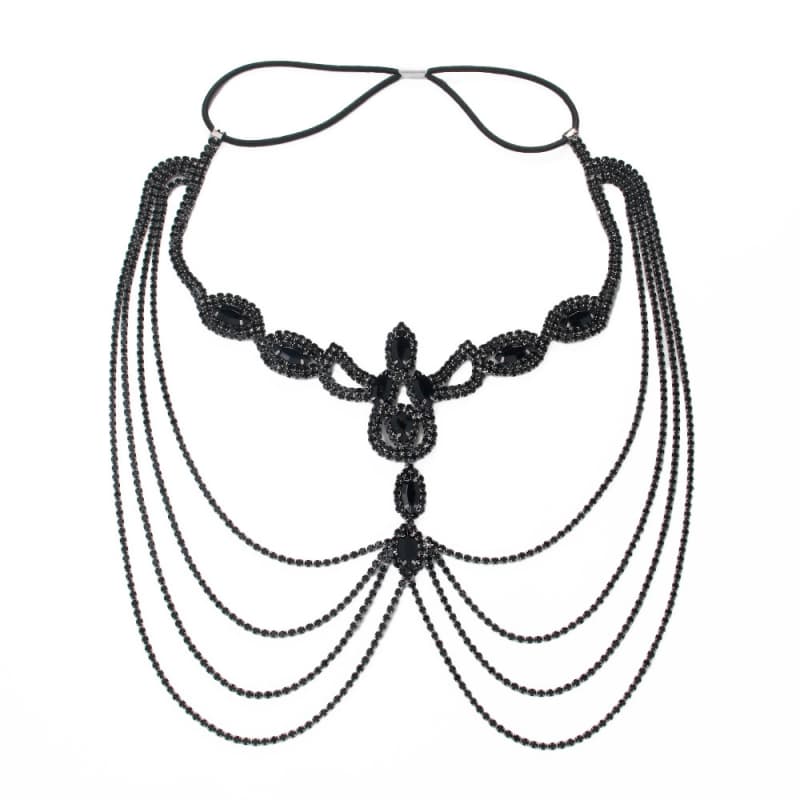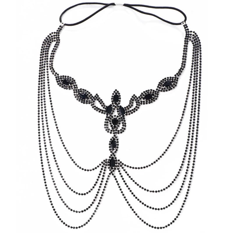Featuring exaggerated sparkling rhinestones and an elegant all-black design, this statement piece adds instant mystery and luxury to any outfit.